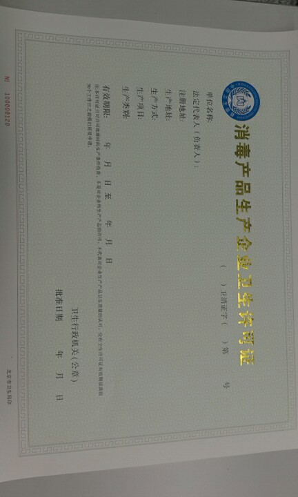 消毒产品生产企业卫生许可证,结果有效期:四年